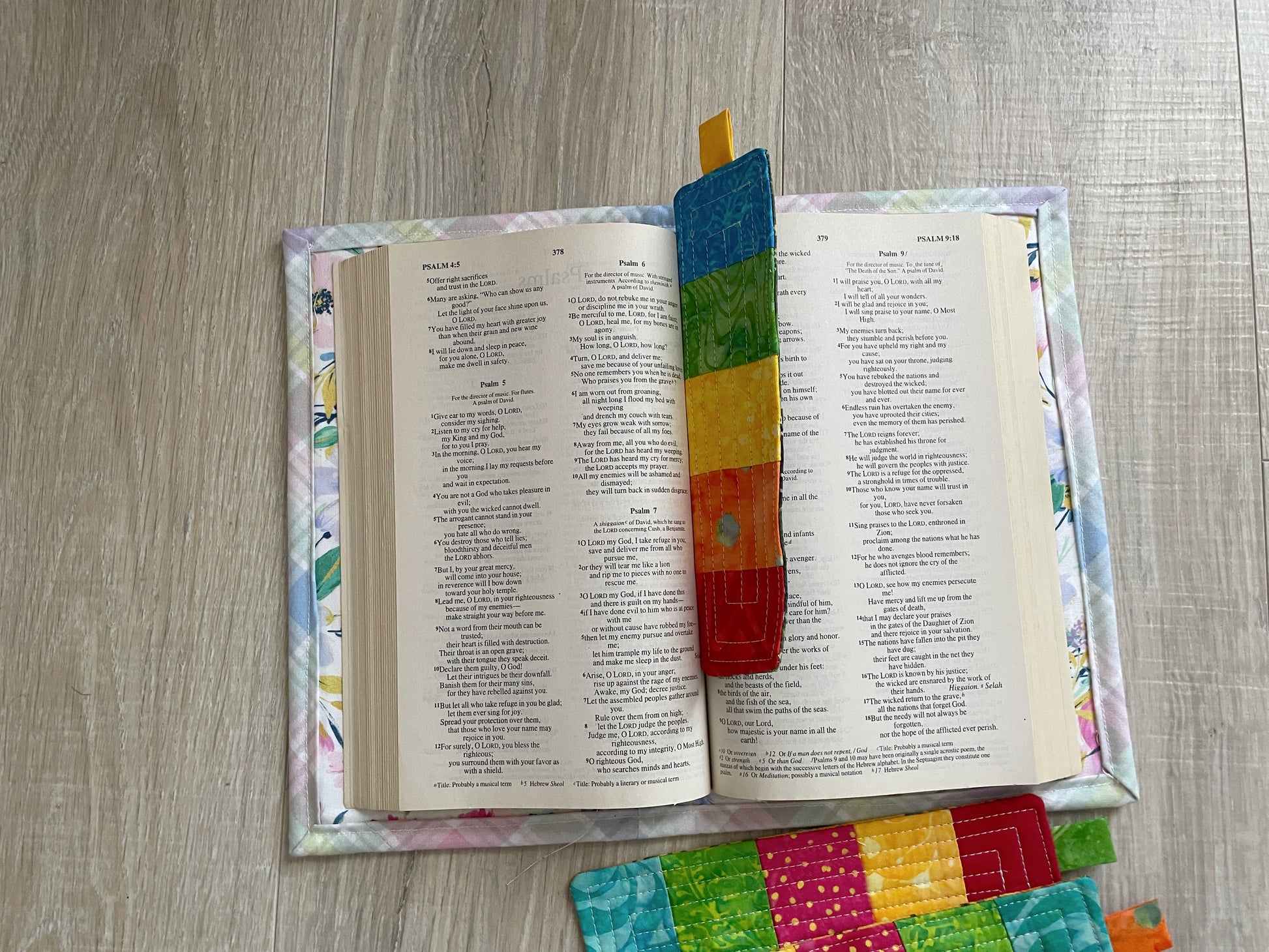 These cute, quilted bookmarks are made with 2 layers of high-quality cotton fabric and an inner layer of cotton batting, making them very flexible and durable.